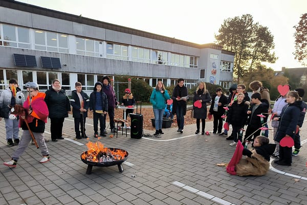 Bericht über St. Martin Gestern war St. Martin. Es war toll und schön. Es war auf dem Schulhof ein Feuer. Wir sind durch das Schulhaus gelaufen. Draußen haben wir gesungen und haben das St. Martins-Spiel aufgeführt. Jede Klasse hat eine Martinsbrezel bekommen, die die Klasse 2/3 selbst gebacken hat. Von Nico und Devin (KLASSE 3/4/5a)