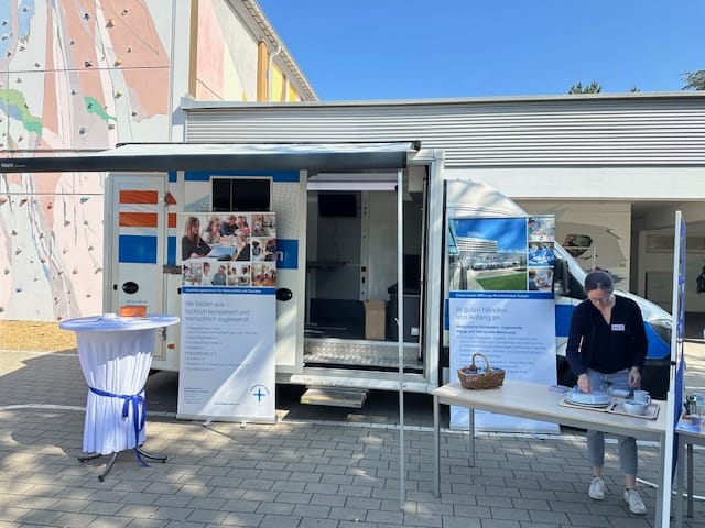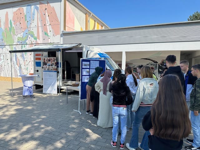 Am 07.06.24 stattete das Recruitingmobil des Diakonissen-Stiftungs-Krankenhaus Speyer uns einen Besuch ab. Unter dem Motto „Einsteigen-Aufsteigen“ kamen Frau Münchbach und Herr Florian mit unseren Schülerinnen und Schülern ins Gespräch und zeigten in aktiver Form, welche möglichen Ausbildungsberufe das Diakonissen-Stiftungskrankenhaus-Speyer anbietet. Der umgebaute ehemalige Rettungswagen diente als Vorstellungs- und Mitmachplattform. Spielerisch wurden unsere Schülerinnen und Schüler an möglich Ausbildungsinhalte herangeführt und durften sich ausprobieren. Vielen Dank für die gelungene Präsentation.