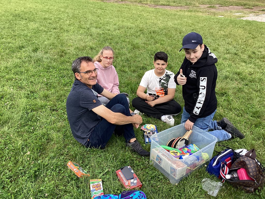 Bornheim. Dort war auch ein Fußballplatz. Zum Glück hatten wir einen Ball dabei und