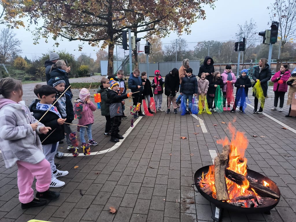 Nach einem stimmungsvollen Laternenumzug durch das komplette Schulhaus, wurde am Lagerfeuer die Martinsgeschichte aufgeführt, Lieder gesungen und selbstgebackene Kekse geteilt. Gerade in dieser turbulenten Zeit, ist die Erinnerung an die Nächstenliebe und das Teilen von zentraler Bedeutung in unserem Miteinander.