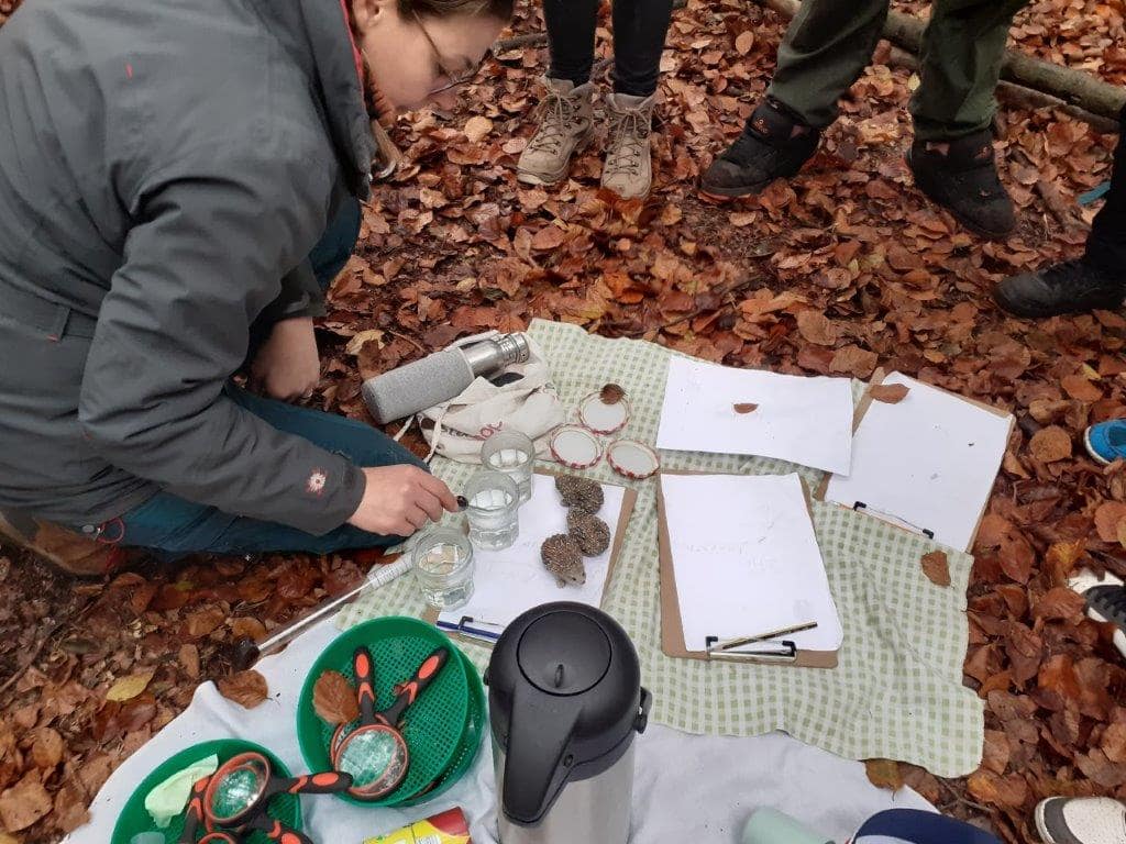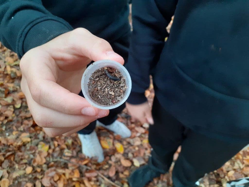 gesiebt und haben geguckt, ob Insekten in der Erde waren. Nach ca. 5 Minuten