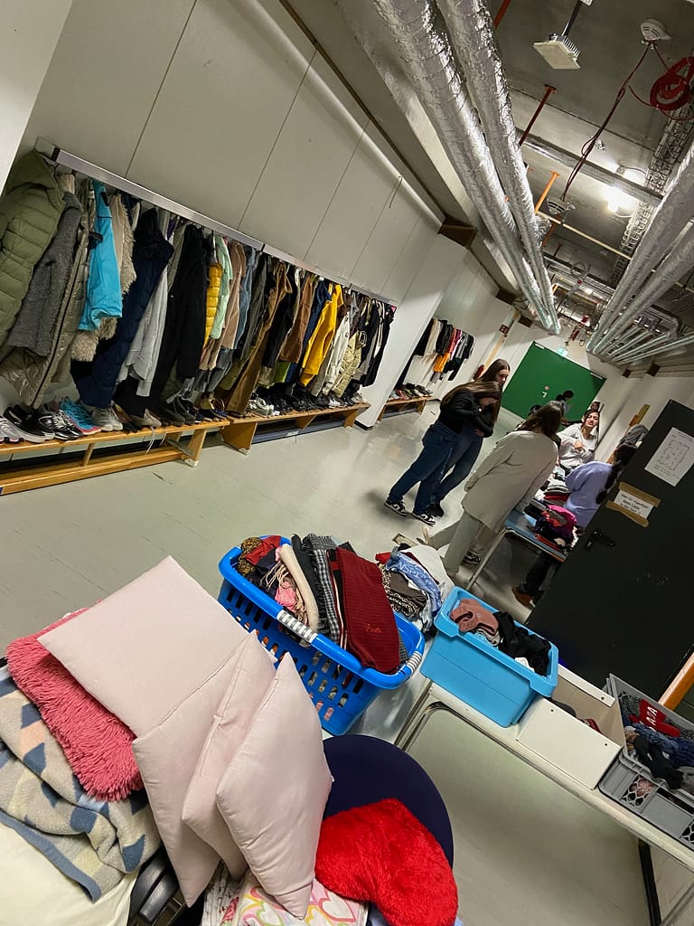 Regen Zulauf hatte unser Kleidermarkt am 4.12. im Flur vor der Aula unserer Schule.
