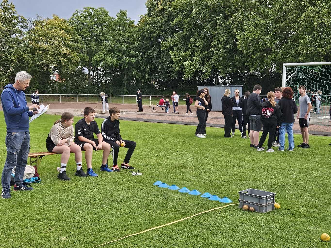 Am 12. September fanden für die Oberstufe in Dudenhofen die Bundesjugendspiele statt. Bei etwas Sonnenschein und angenehmen Temperaturen traten die Schülerinnen in verschiedenen Disziplinen gegeneinander an. Alle TeilnehmerInnen bewiesen dabei Teamgeist und Fairness. Die Wettkämpfe waren spannend und boten zahlreiche großartige sportliche Leistungen. Ob beim Sprint, Weitsprung oder Ballweitwurf – überall konnte man großen Einsatz und Ehrgeiz beobachten. Neu war dieses Mal das Kugelstoßen. Viele SchülerInnen erprobten diese Disziplin und konnten mehr Punkte sammeln als beim Ballweitwurf.