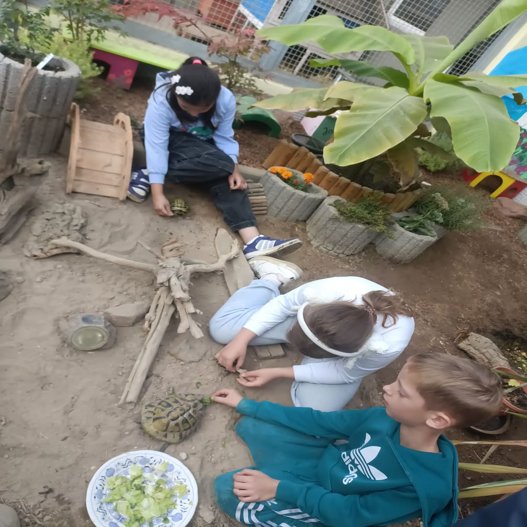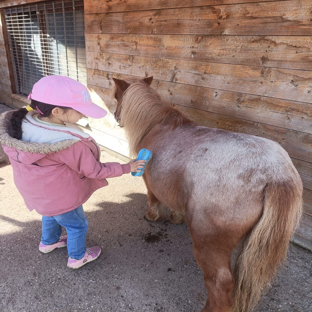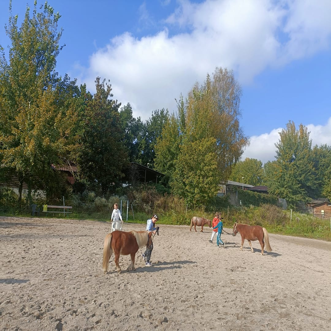 Am Donnerstag, den 24.09. und Mittwoch, den 1.10.2025, erkundeten Schülerinnen und Schüler der Unterstufe den Streichelzoo Rülzheim und halfen fleißig bei der Pflege der Tiere und des Geländes mit. Die Tiere wurden gestreichelt und gefüttert und die Ställe gemistet. Zum Ende des Vormittags bewegten die Kinder die Ponys auf dem Sandplatz, was für alle Beteiligten viel Spaß bedeutete. Die Schülerinnen und Schüler zeigten hierbei große Hilfsbereitschaft und Begeisterung im Umgang mit den Tieren. Besonders die Schildkröten und Shetland-Ponys sorgten für strahlende Augen. Schnell war der Beschluss gefasst: „Wir kommen wieder!“.