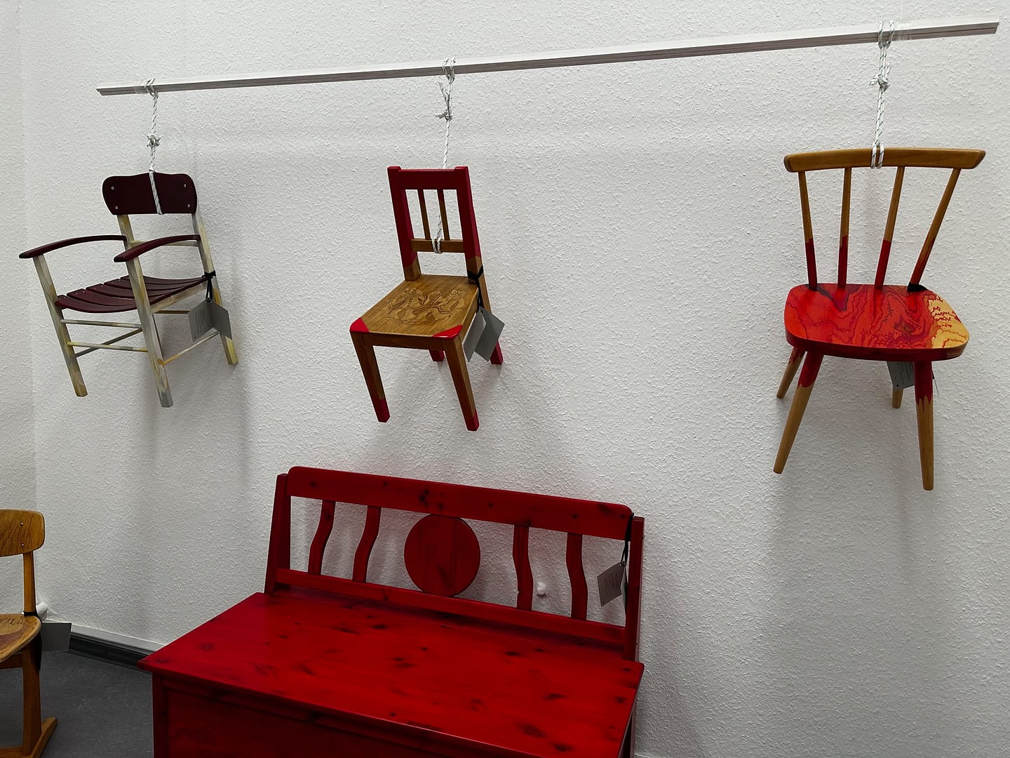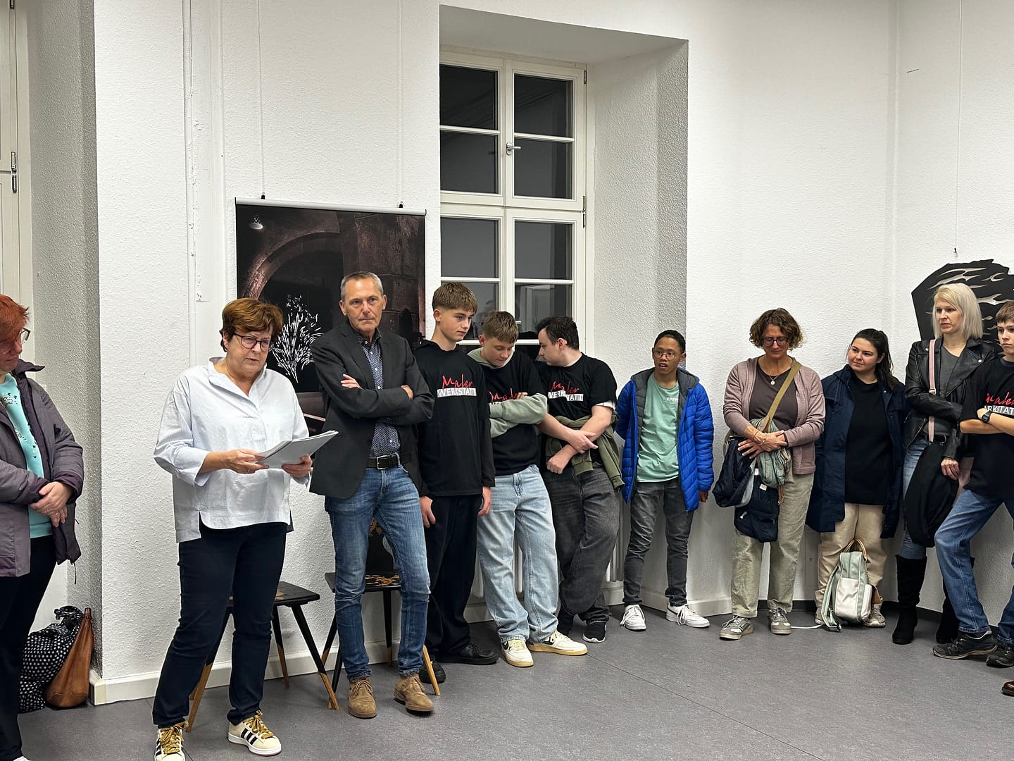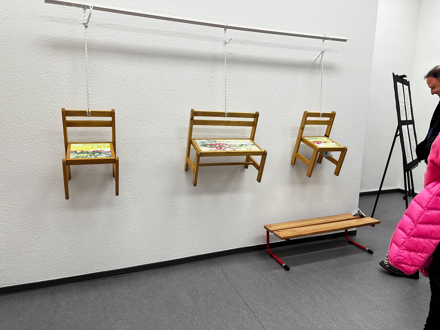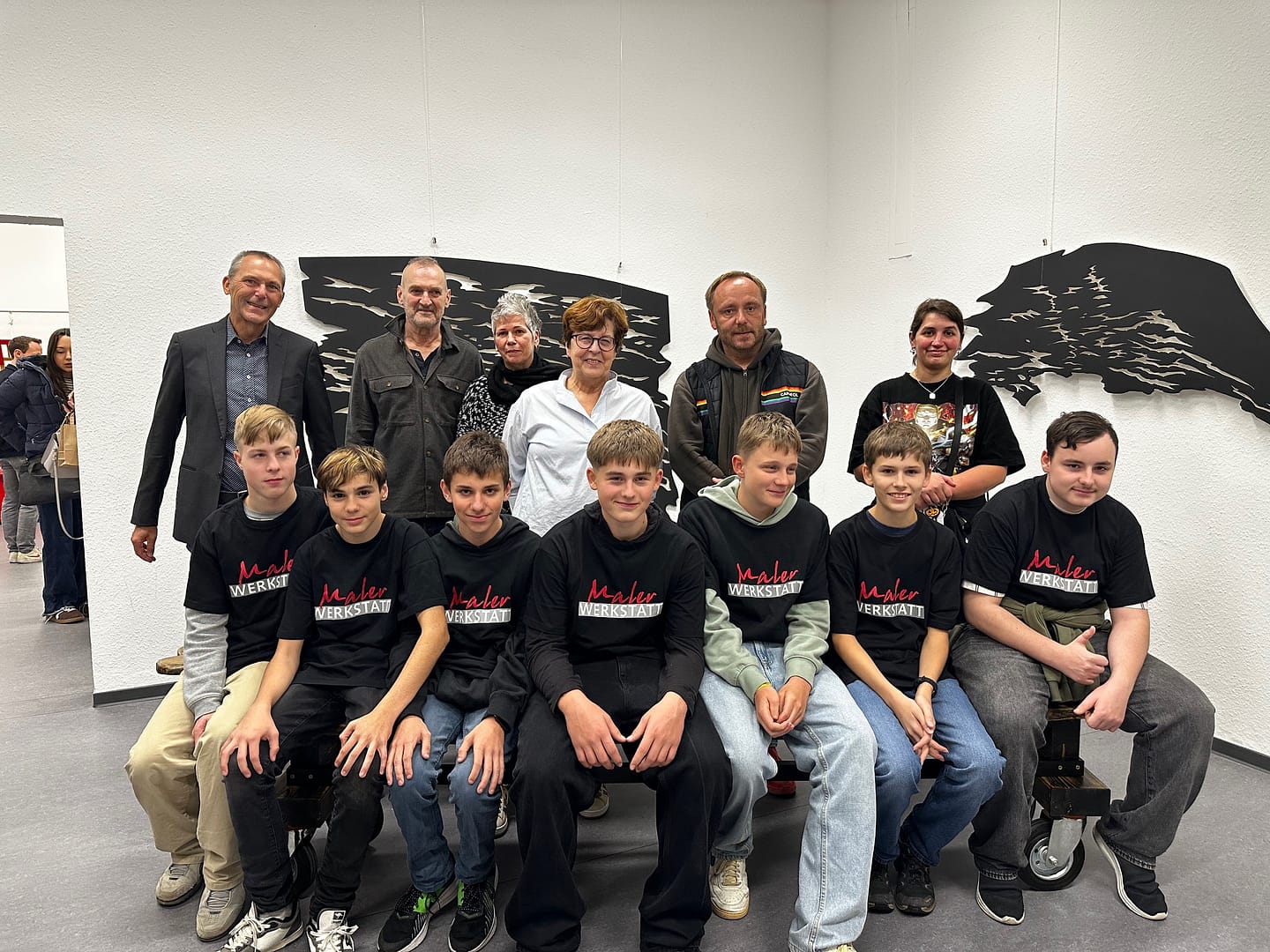Am 30.10.25 wurde die Ausstellung MALERWERKSTATT, WAS JETZT? im Sophie-La-Roche-Haus eröffnet. Gezeigt werden Arbeiten aus dem Berufsvorbereitungsprojekt der Schule im Erlich – farbig neu gestaltete Möbel, Wandobjekte und Fotos. Die Veranstaltung wurde durch einleitende Worte von Bürgermeisterin Frau Kabs und unserem Schulleiter Herr Schall eröffnet. Frau Kabs gab ein Überblick über das 20jährige Bestehen der Malerwerkstatt und betonte die Wichtigkeit dieses sozialen/handwerklichen Projektes für die Entwicklung der Jugendlichen und die Vermittlung auf den ersten Arbeitsmarkt. Herr Schall begrüßte auch die zahlreich erschienen ehemaligen Schülerinnen und Schüler der Malerwerkstatt und benannte exemplarischen deren positiven Werdegang nach der Schulzeit.