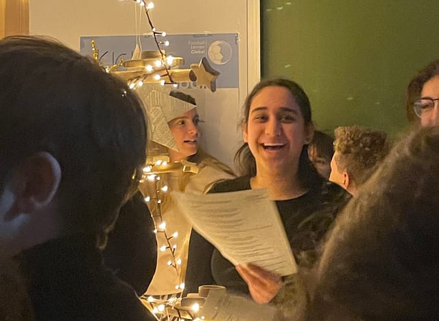 Eine lieb gewonnene Tradition an der Schule im Erlich: Montags in der Adventszeit versammeln sich alle Schülerinnen und Schüler und alle Angestellten im schön geschmückten Flur im Erdgeschoss. Die Band singt am Mikrofon, die Lehrer-Band begleitet mit Instrumenten, alle singen mit und geben das Licht „von einer Hand zur anderen Hand“, denn „Weihnachten ist auch für dich“!