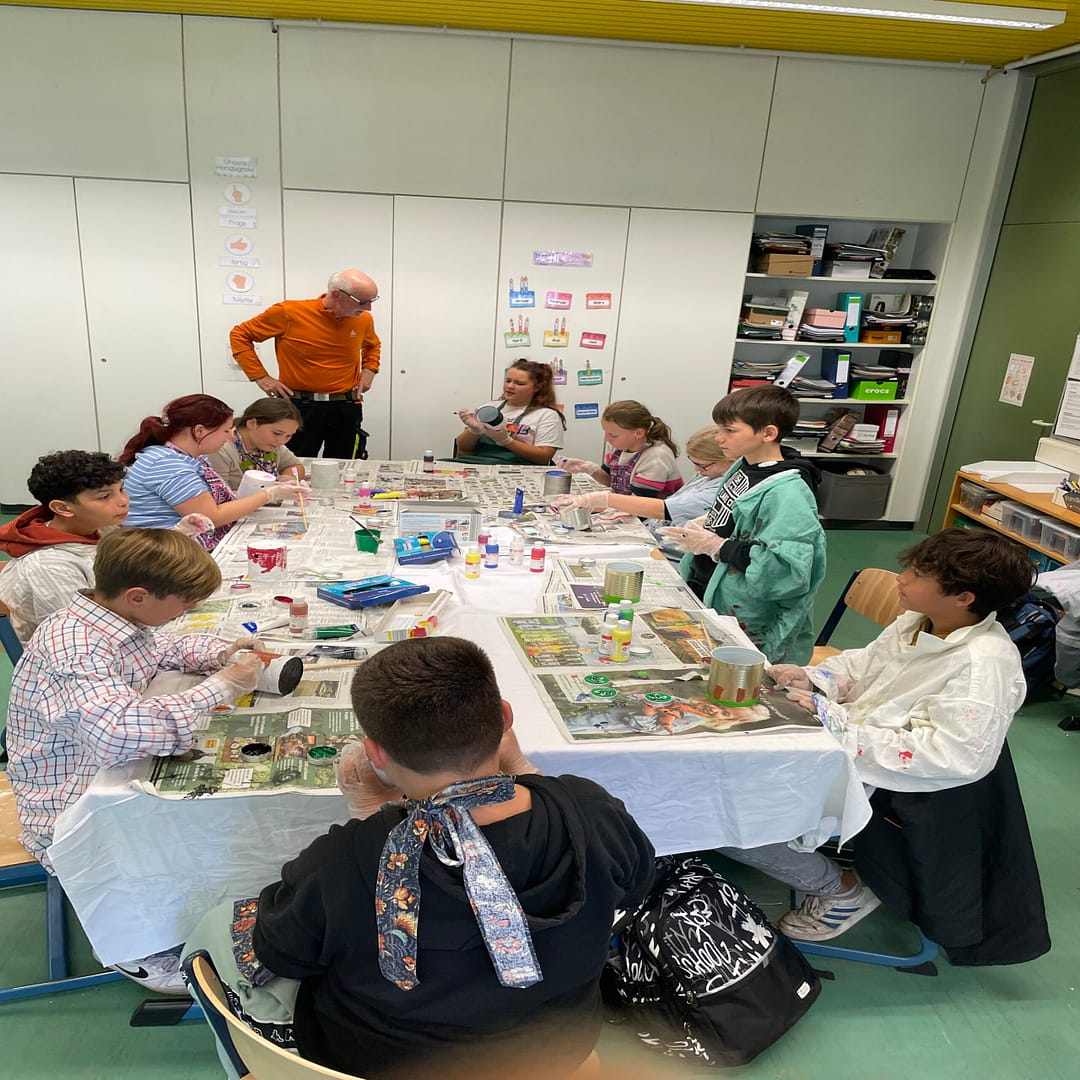 In Kooperation mit den Speyrer Müllpaten und der JuMA (Junge Menschen im Aufwind) haben die SchülerInnen der Klasse 5/6 Aschenbecher gebastelt, die jetzt zahlreich am Berliner Platz in Speyer West aufgestellt wurden. Ziel ist es durch die kurzen Wege Raucher zu motivieren, ihre Zigarettenstummel nicht mehr auf den Boden zu werfen. Die gesammelten Kippen werden von der JuMA regelmäßig abgeholt und die Filter dann von einer Firma zu Aschenbechern recycelt.