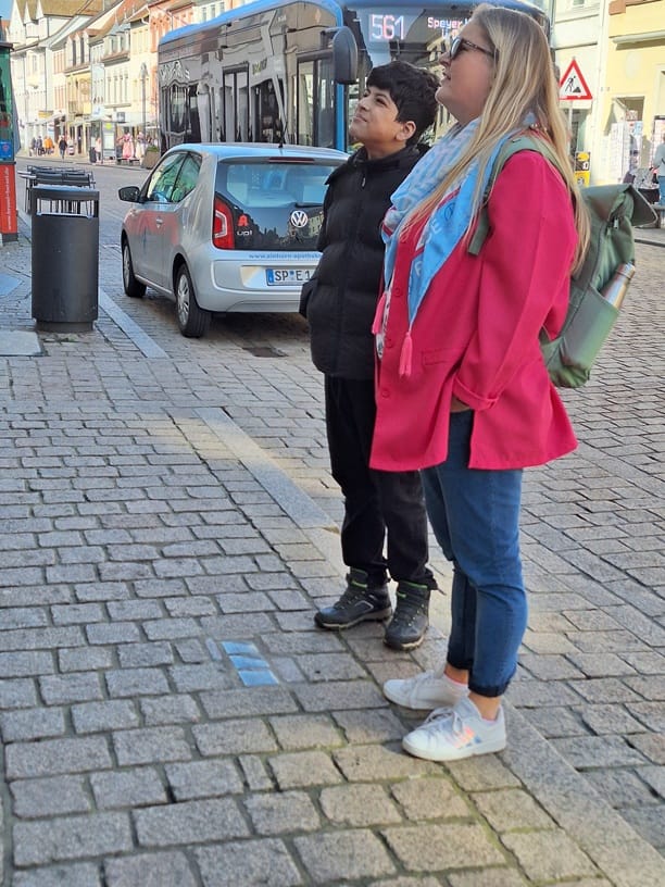 wollten mehr über unser Projekt Stolpersteine erfahren. Wir fuhren in die Stadt und teilten uns in kleine